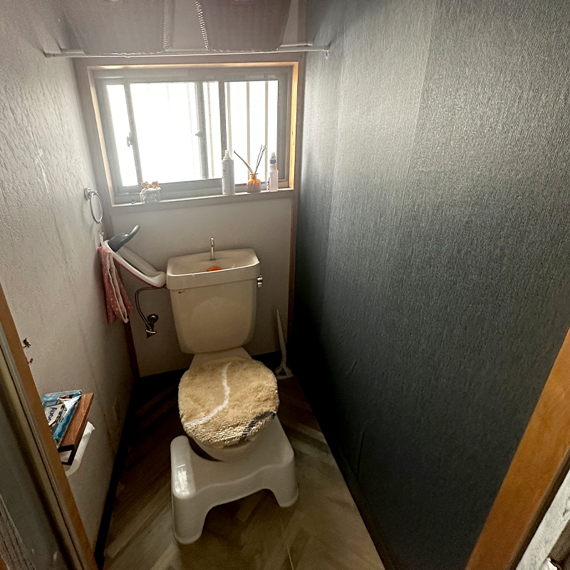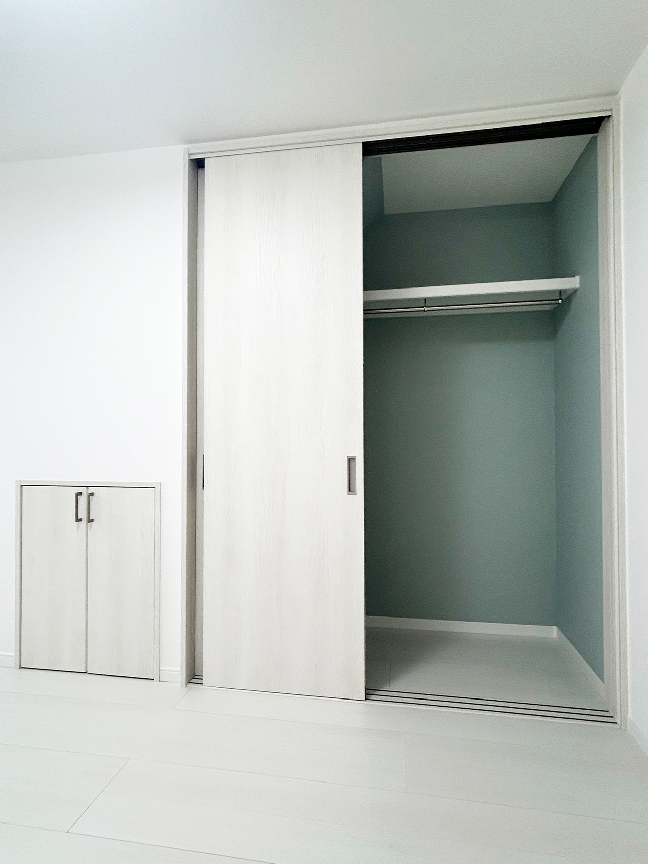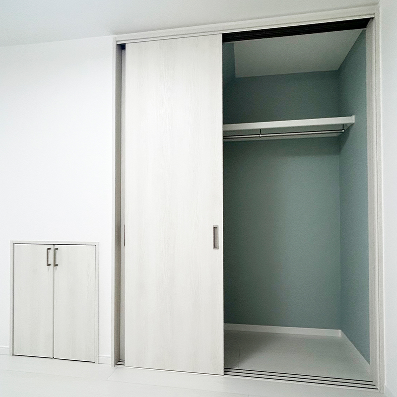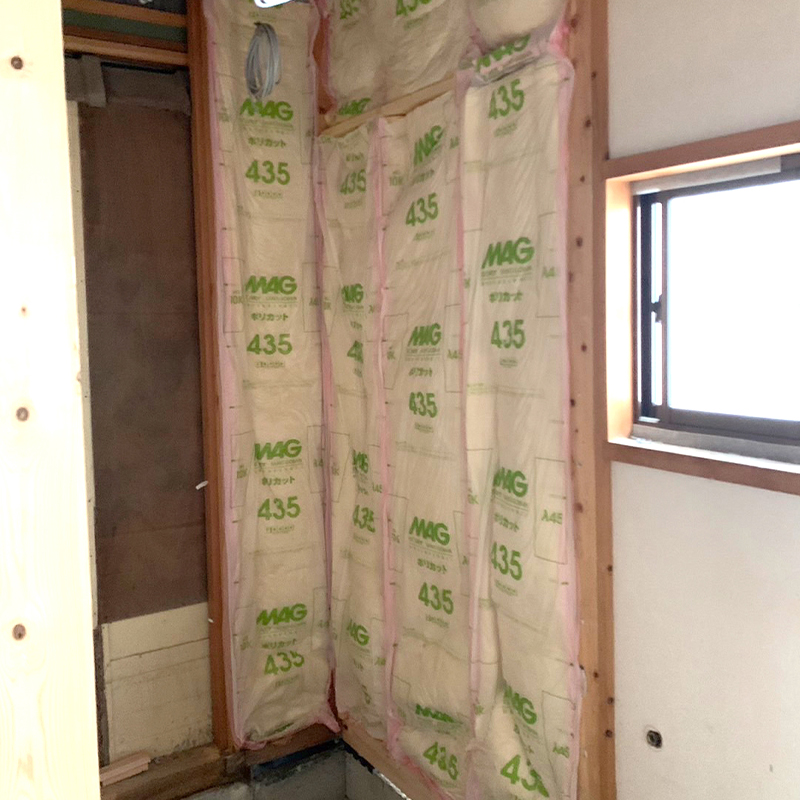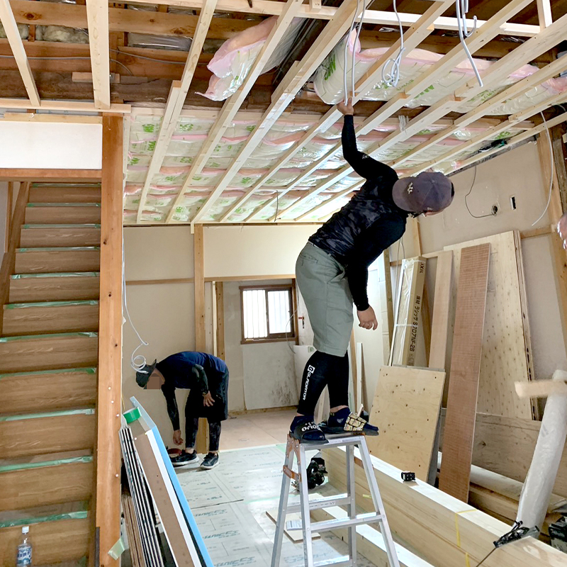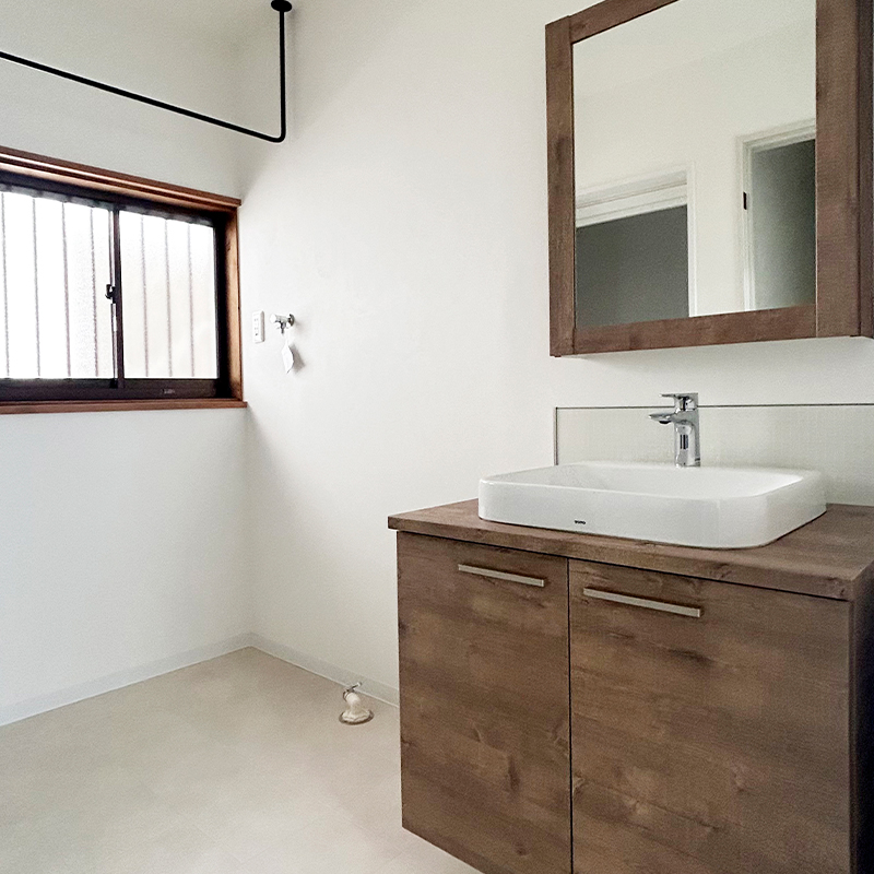 2025年竣工 奥に長く大きな窓がない1階を白基調にしたことで 部屋全体が明るくなりました。